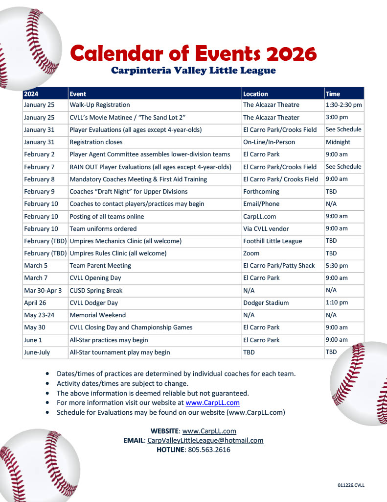 Carpinteria Valley Little League 1072 Casitas Pass Road PMB 242 Carpinteria, California 93013